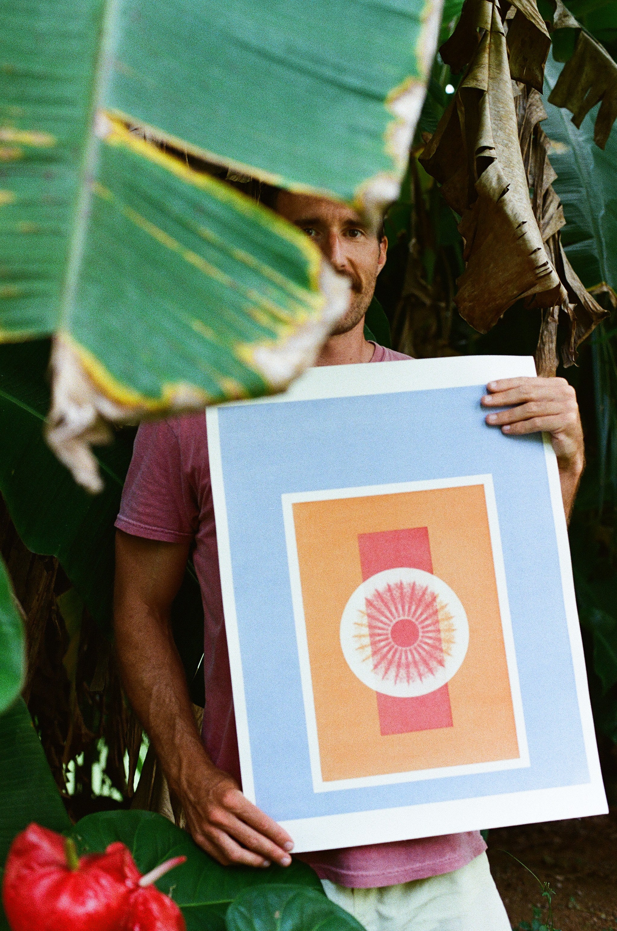 Inspired by the color palette of Indian street corners, temple walls, and sun-kissed pastels from Sri Lankan beach towns, each print is uniquely created using the gum dichromate and photogram process.