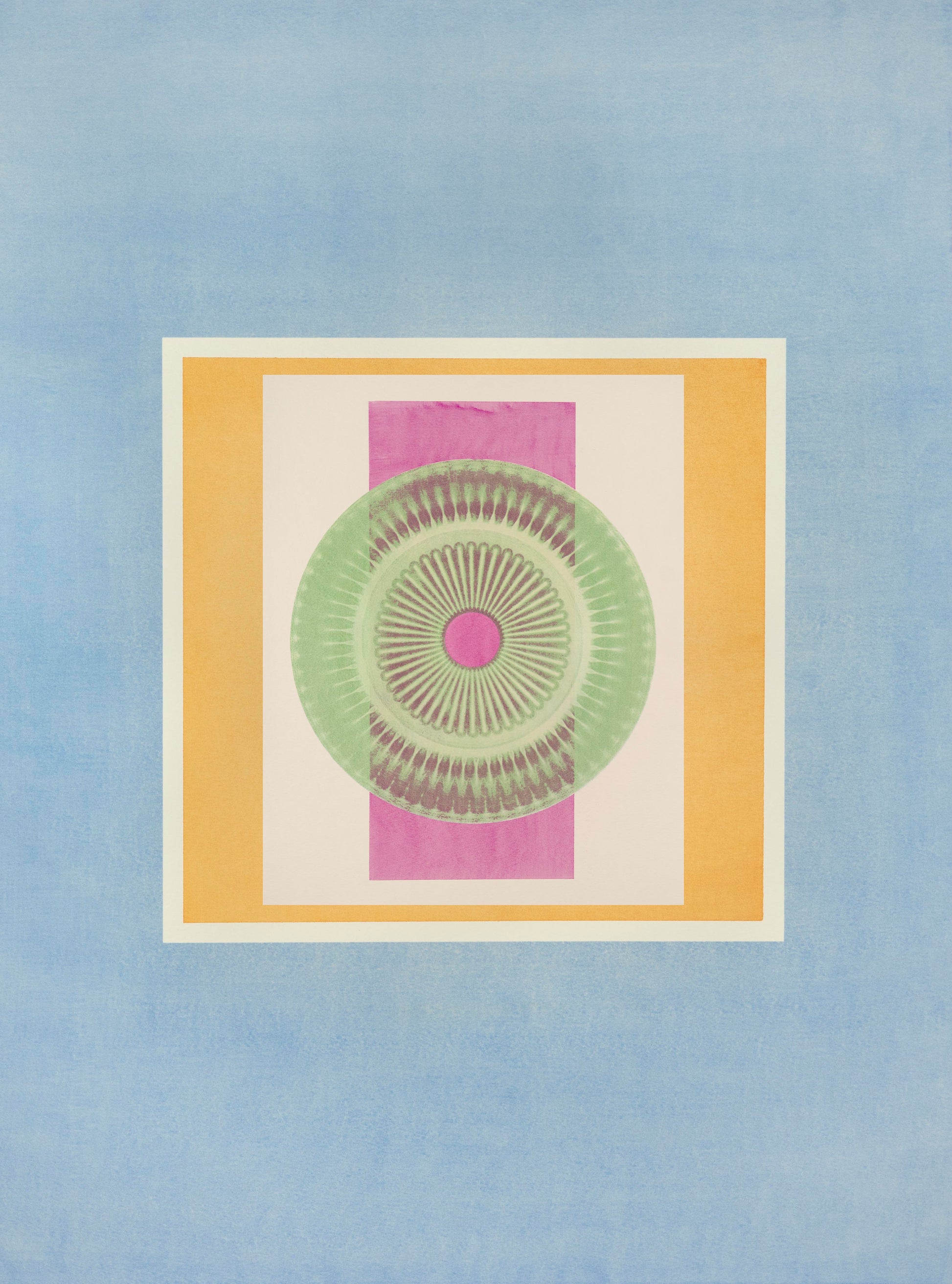 Soft pastels and sun washed palettes shape the composition of rectangular fields of color. Each print features a mandala created in the darkroom by sculpting light through crystal glass. Historical photographic methods and a little darkroom magic pair to create a series of timeless photographic prints.